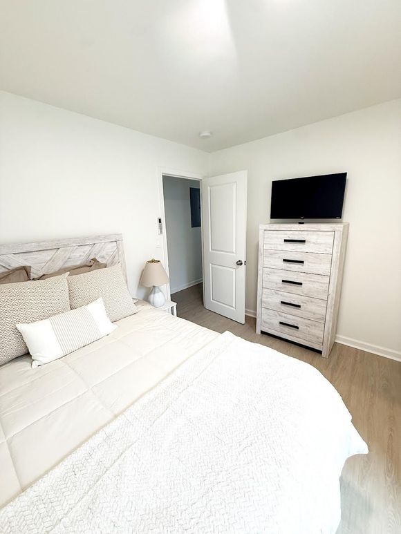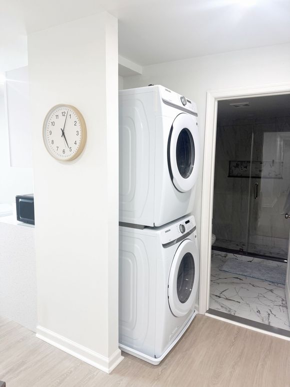 Shore thing offers in unit washer and dryers, keyless entry, full kitchen including dishes and silverware , free wifi, clothing storage, and balcony access.